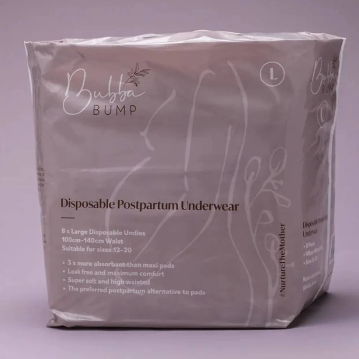 The Bubba Bump postpartum disposable maternity underwear is leak free, super comfortable and leaves you feeling secure post birth. Perfect for the initial postpartum and beyond. You can wear them in place of sanitary pads and/or panty liners – a must for urinary incontinence, weak bladder muscles and pelvic core postpartum.