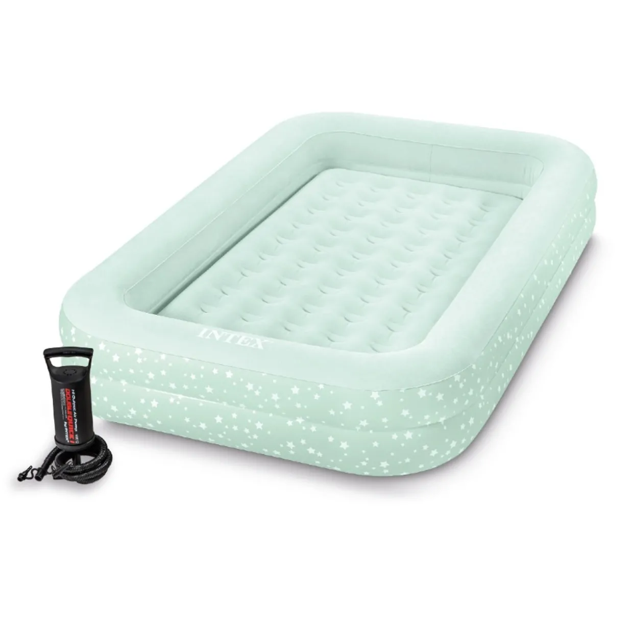 - Includes a hand pump