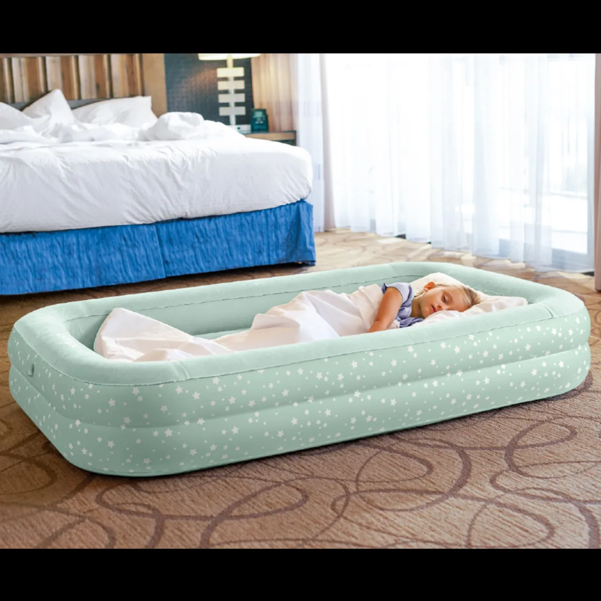 - Uses standard crib sheets