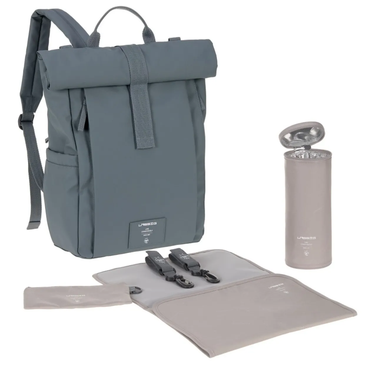 - Includes, change mat, small utensils pouch and insulated drink holder