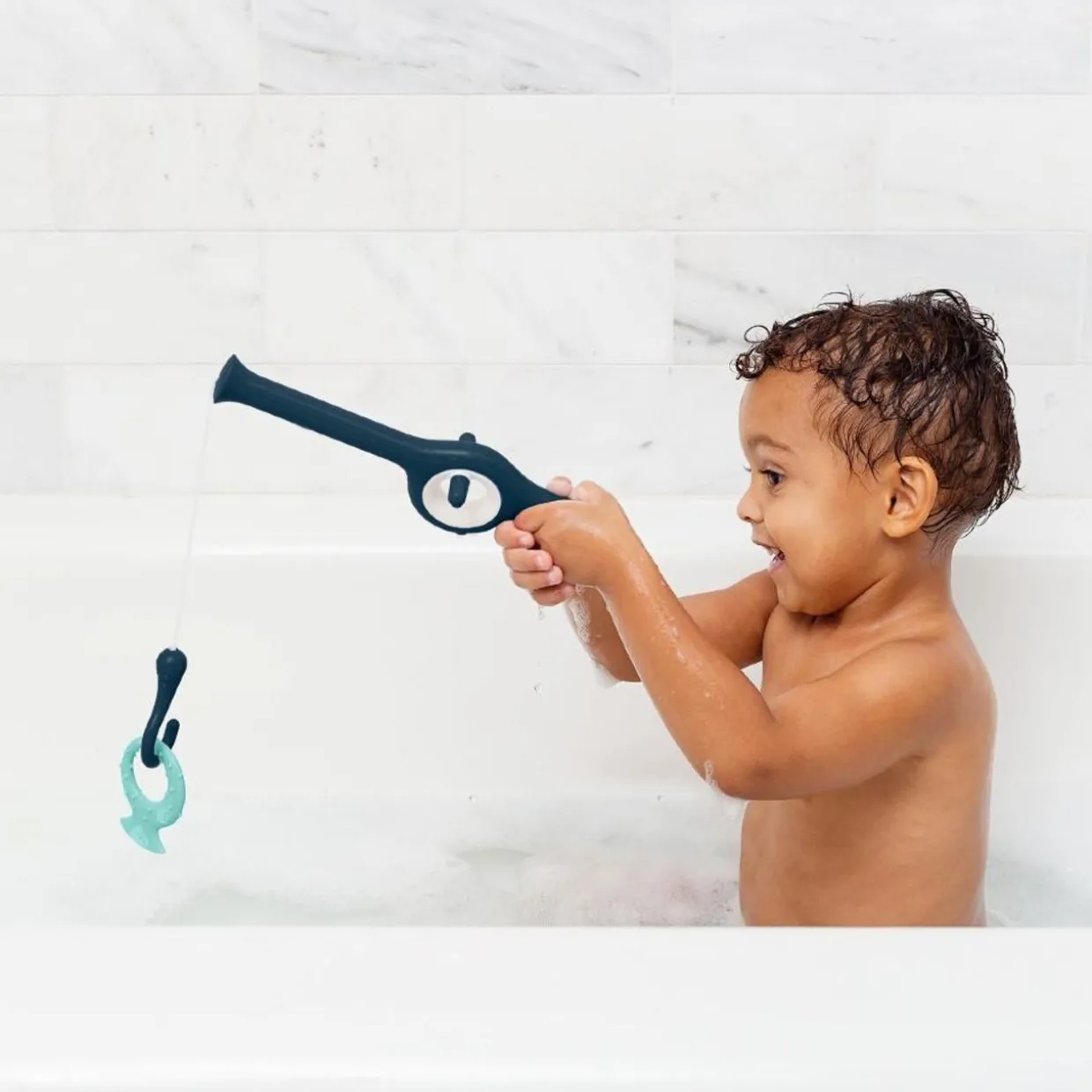 - Weighted hook submerges in water