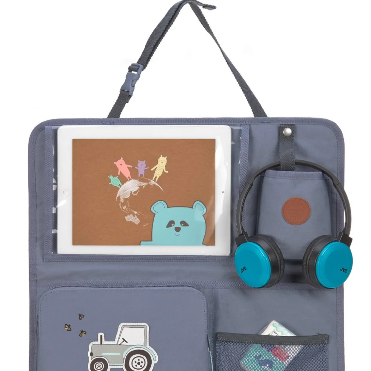 - Easily attaches to back of car seat