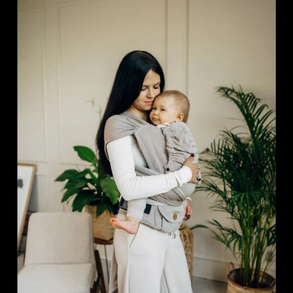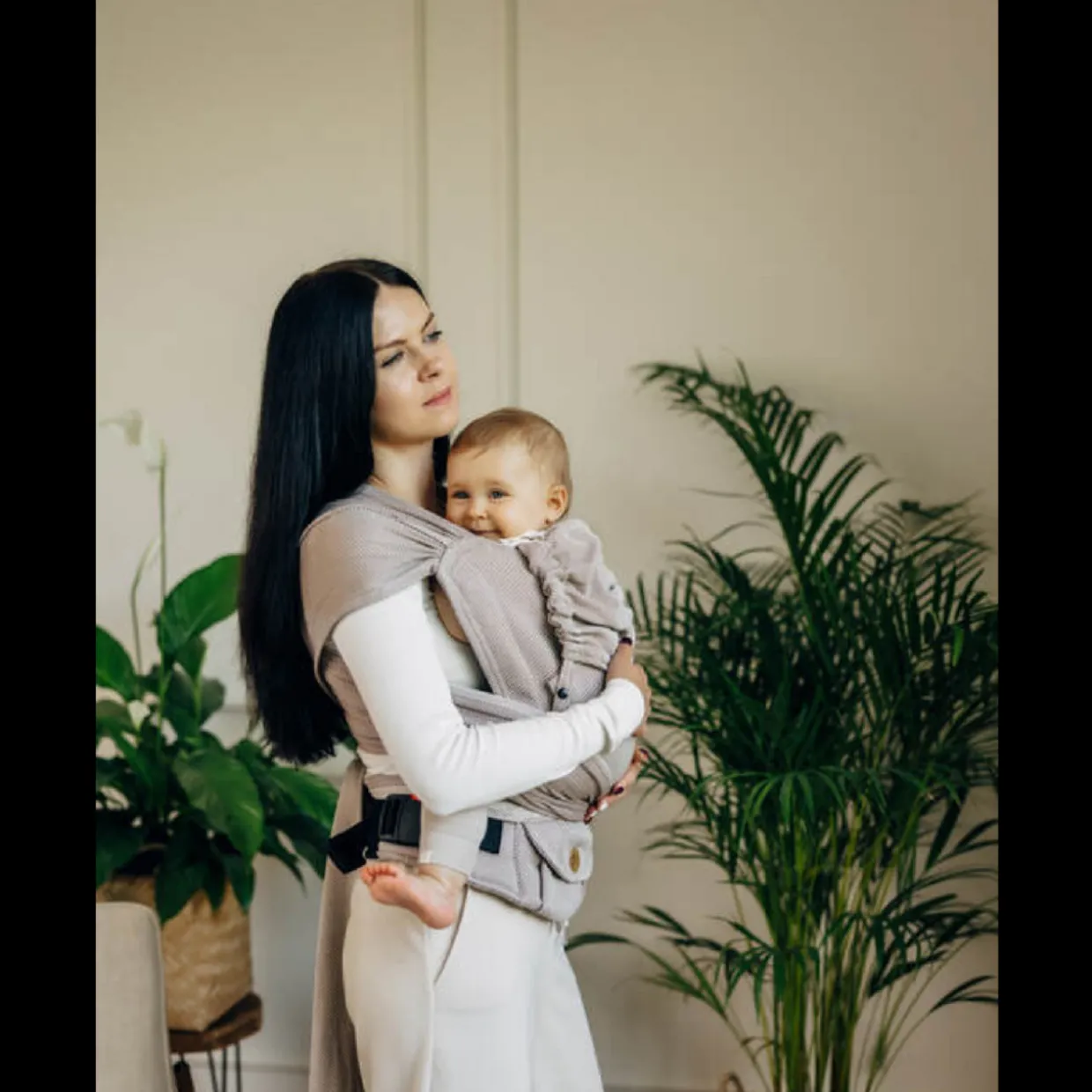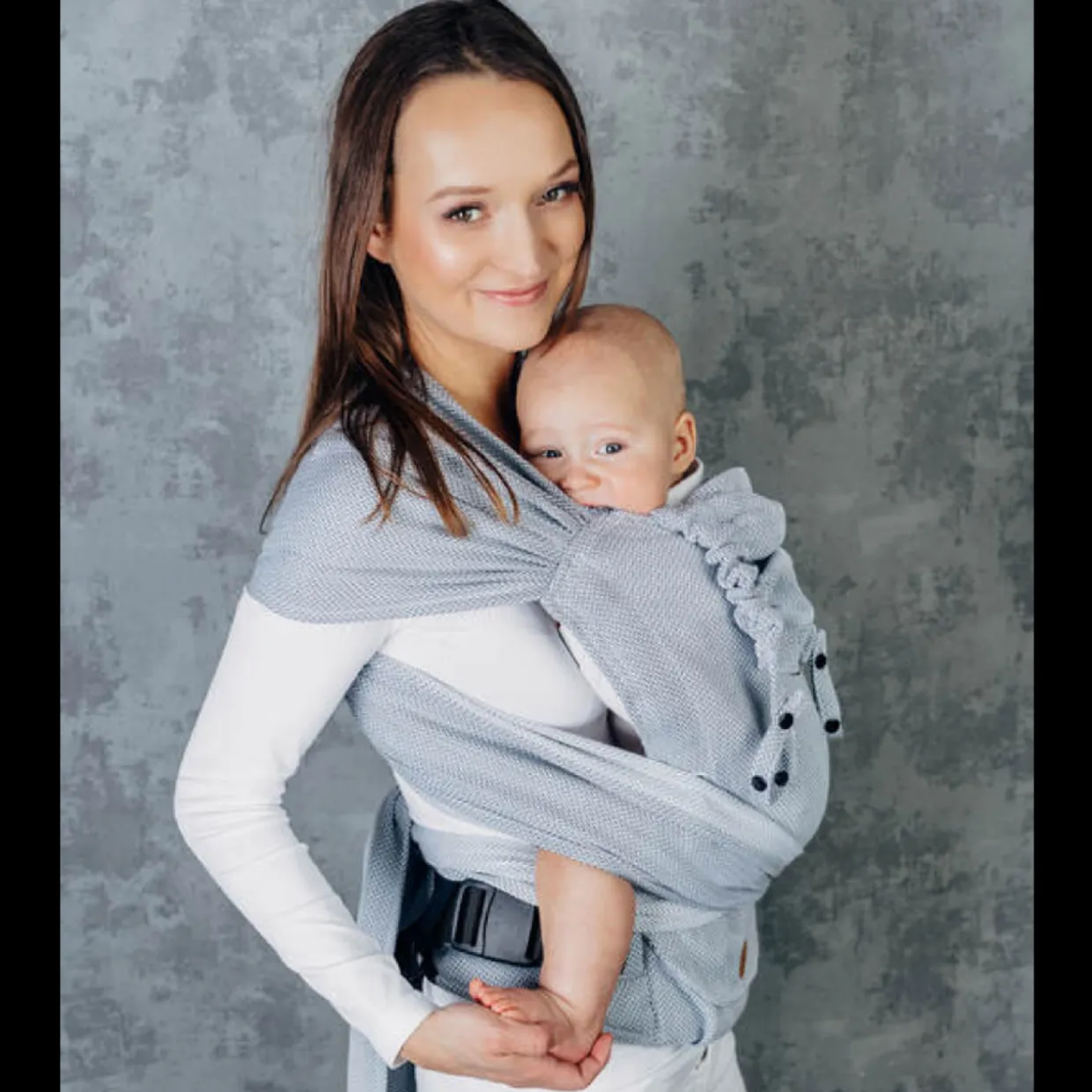 LennyHybrid Half Buckle Carrier is a unique carrier that combines the advantages of an adjustable carrier and a wrap. Thanks to its design and adjustment system it allows to achieve a correct, ergonomic position of the baby. Additionally, it has two wrap straps that stabilize the baby’s position on the sides, which makes it possible to carry a newborn baby safely. The panel adjustment makes the carrier grow with your baby.